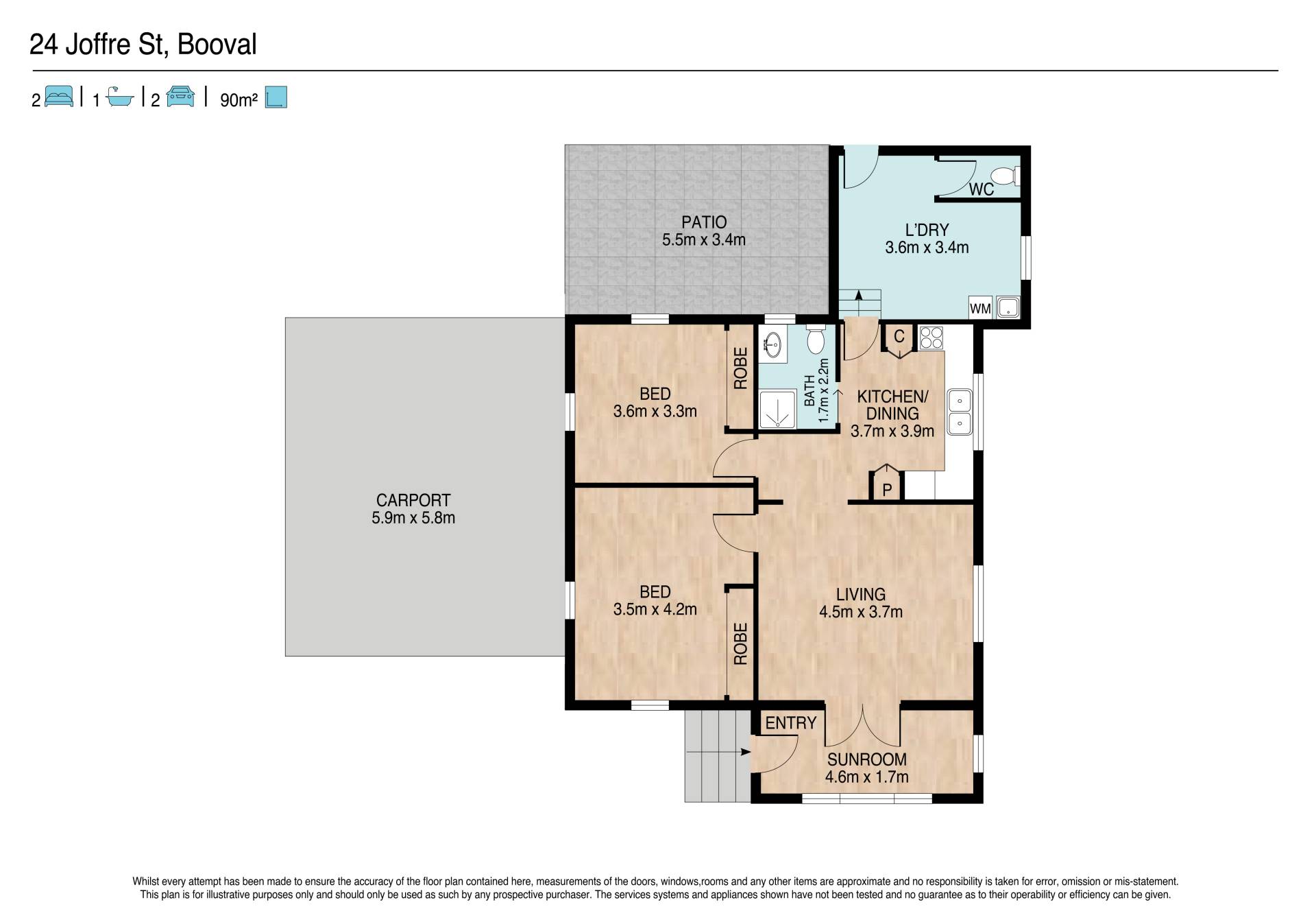 • 2 spacious bedrooms with polished timber floors, security screens, ceiling fans, blinds, built in robes and main bedroom complete with air conditioned comfort