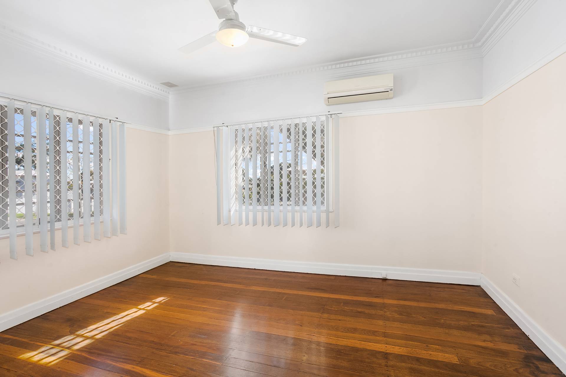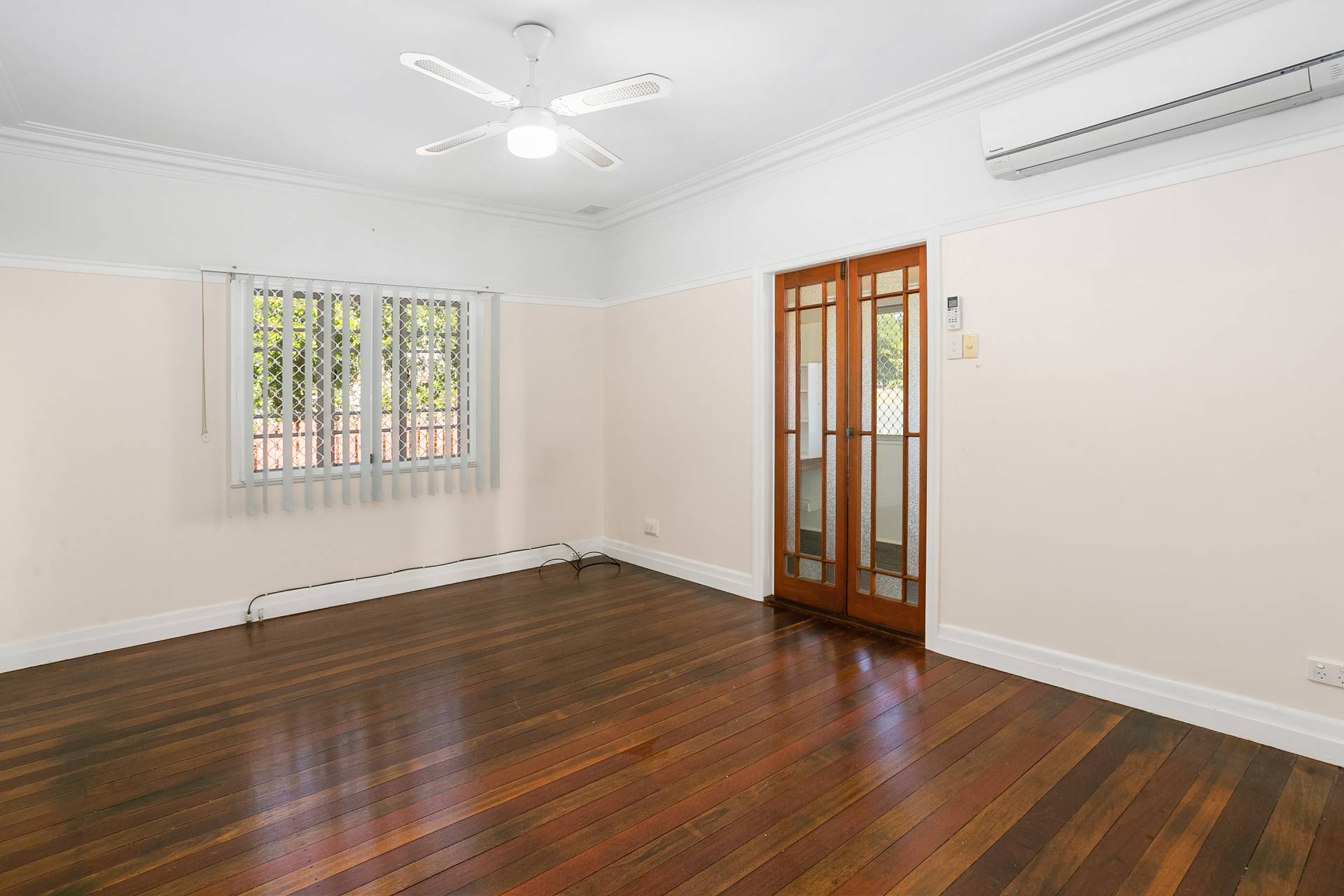 • Generously sized lounge room with polished timber floors, air conditioning, security screens, ceiling fan