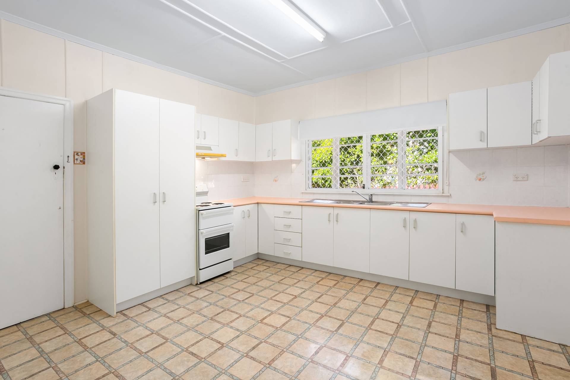 • Large eat in kitchen with plenty of storage options and easy care polished timber floors, upright electric stove and oven
