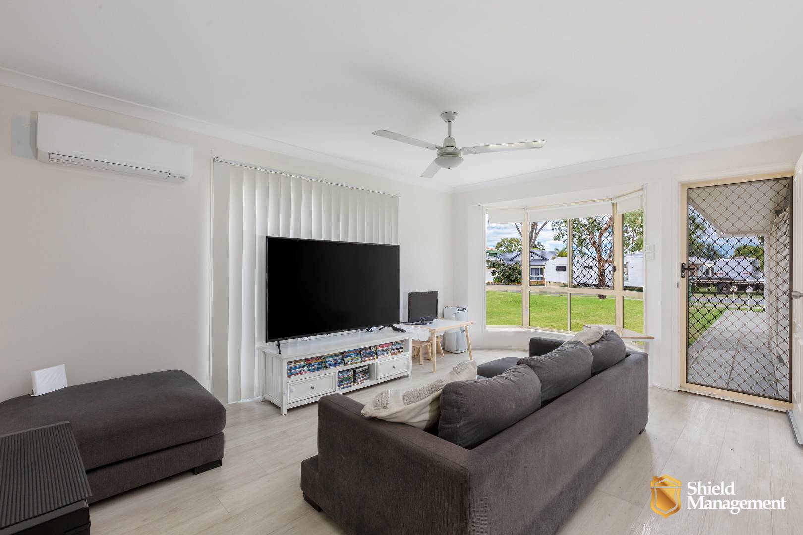 •    Spacious open plan kitchen, lounge and dining area at the front of the home complete with easy care vinyl flooring, air-conditioned comfort, security screens, ceiling fan and rear yard access